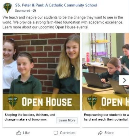 Created in winter 2018 as a promotion piece for SS. Peter & Paul School. I developed the video through stock footage. I provided the messaging, copywriting, and voice-over work.